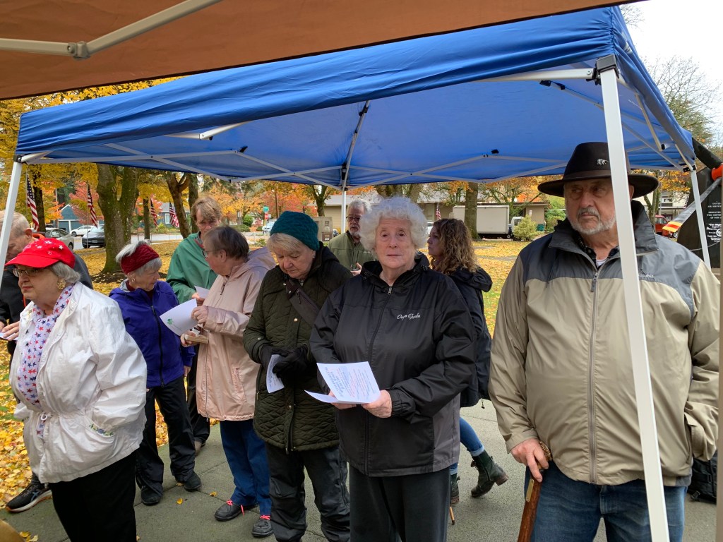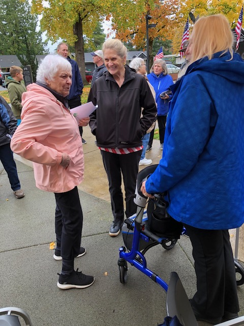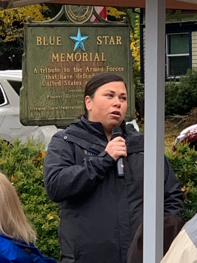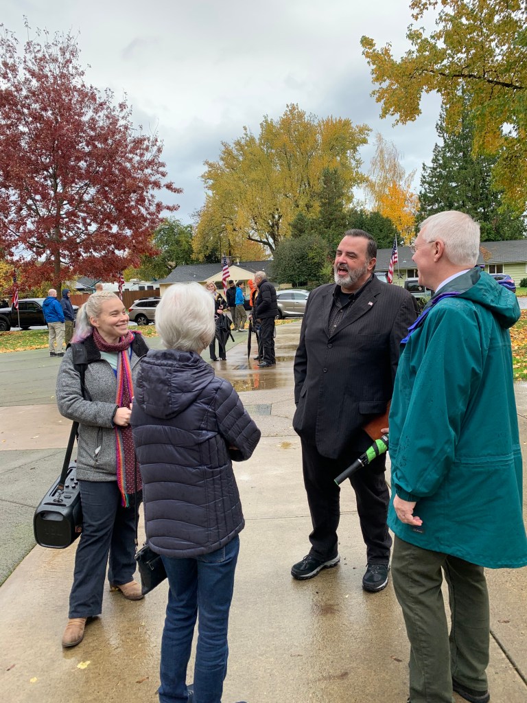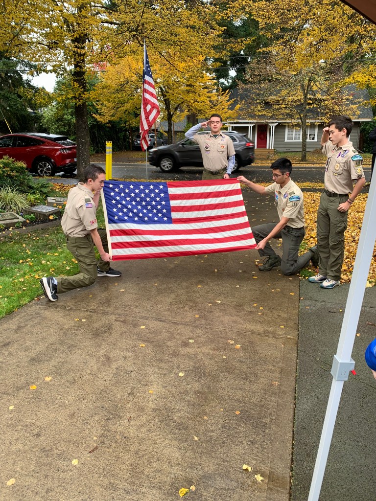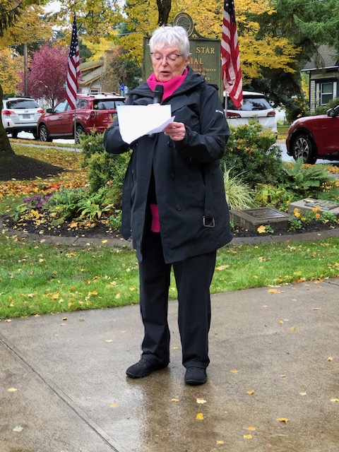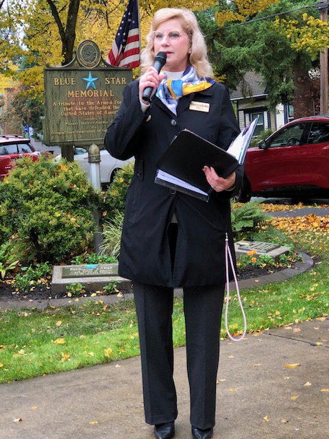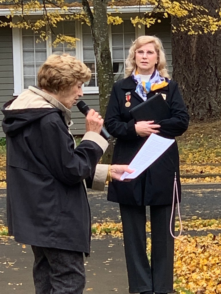 Also attending were Oregon State President Carolyn Olley, Oregon State Parliamentarian Mike Stewart, Oregon State Past President Gaye Stewart, celebrant Ernie Claeson, a Color Guard including Eagle Scouts from Beaverton Scout Troop #618,and many members of the Beaverton Garden Club and several others. Denise Tomasovic was the soloist and sang “God Bless America” as the church bells nearby rang at 11:00.