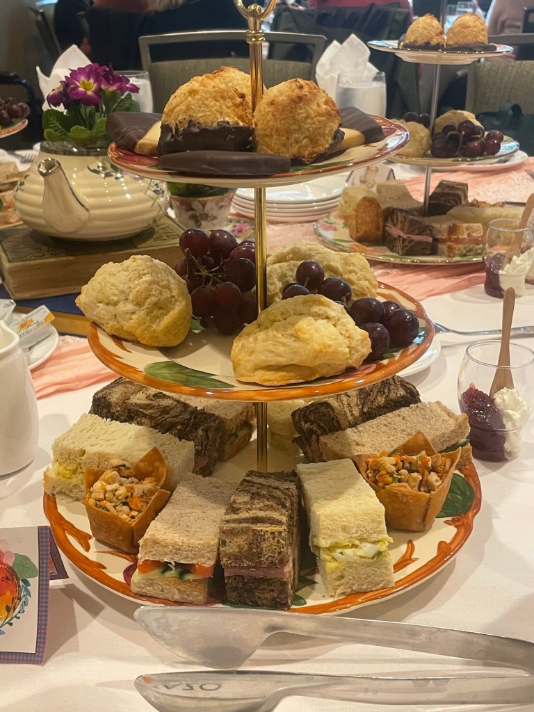 The High Tea was a very welcome opportunity to relax, sip some excellent teas, and nibble on some truly delightful snacks while listening to a talk on gardens in England.
