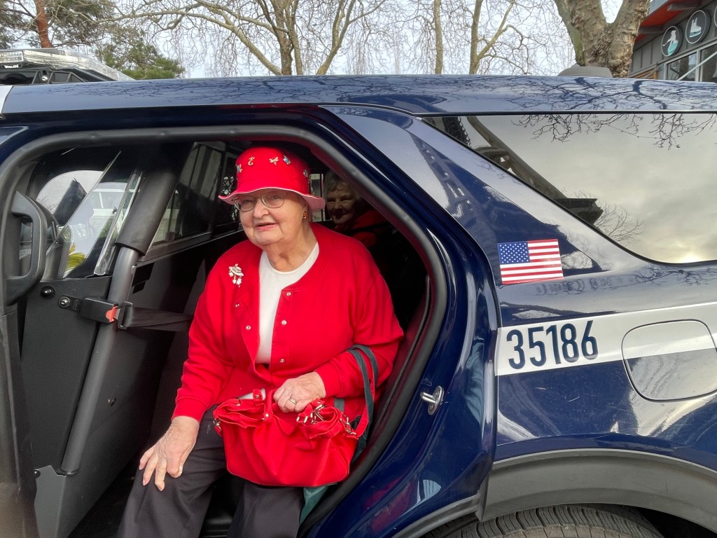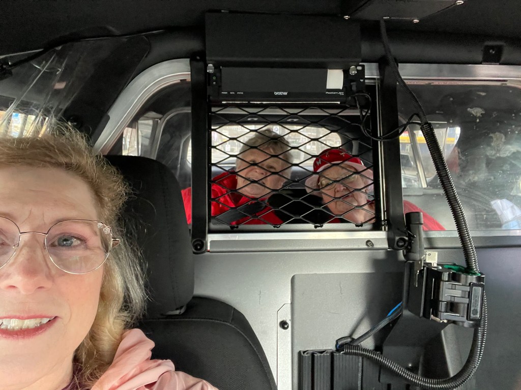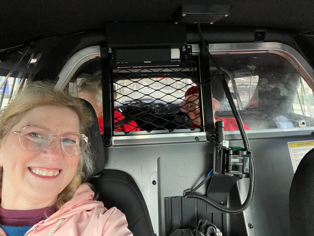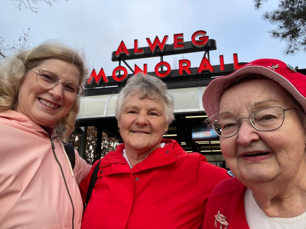 We had a ride in the car of Seattle’s Finest! One of our members was having difficulty walking, and one of Seattle’s amazing police officers kindly drove us up to the handicap accessible entrance to the monorail. Honest, we weren’t in trouble!