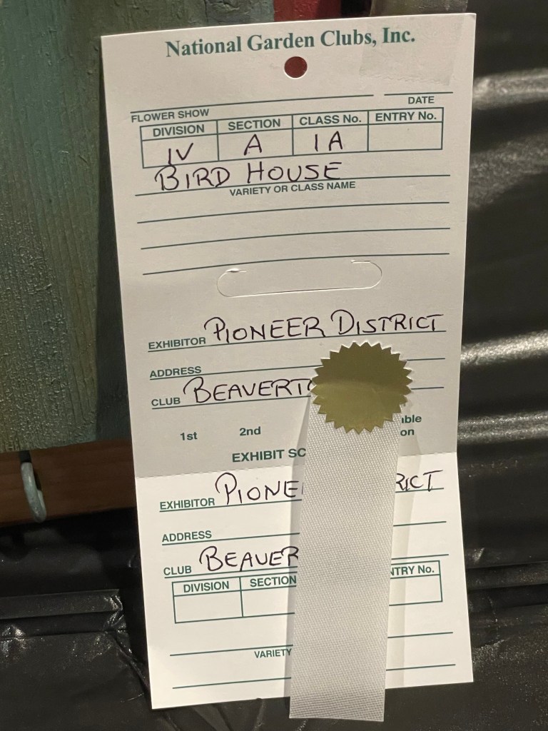 Beaverton Garden Club had two entries in the Birdhouses division, and they each got a ribbon!
