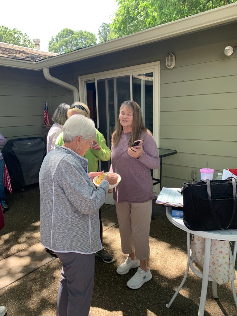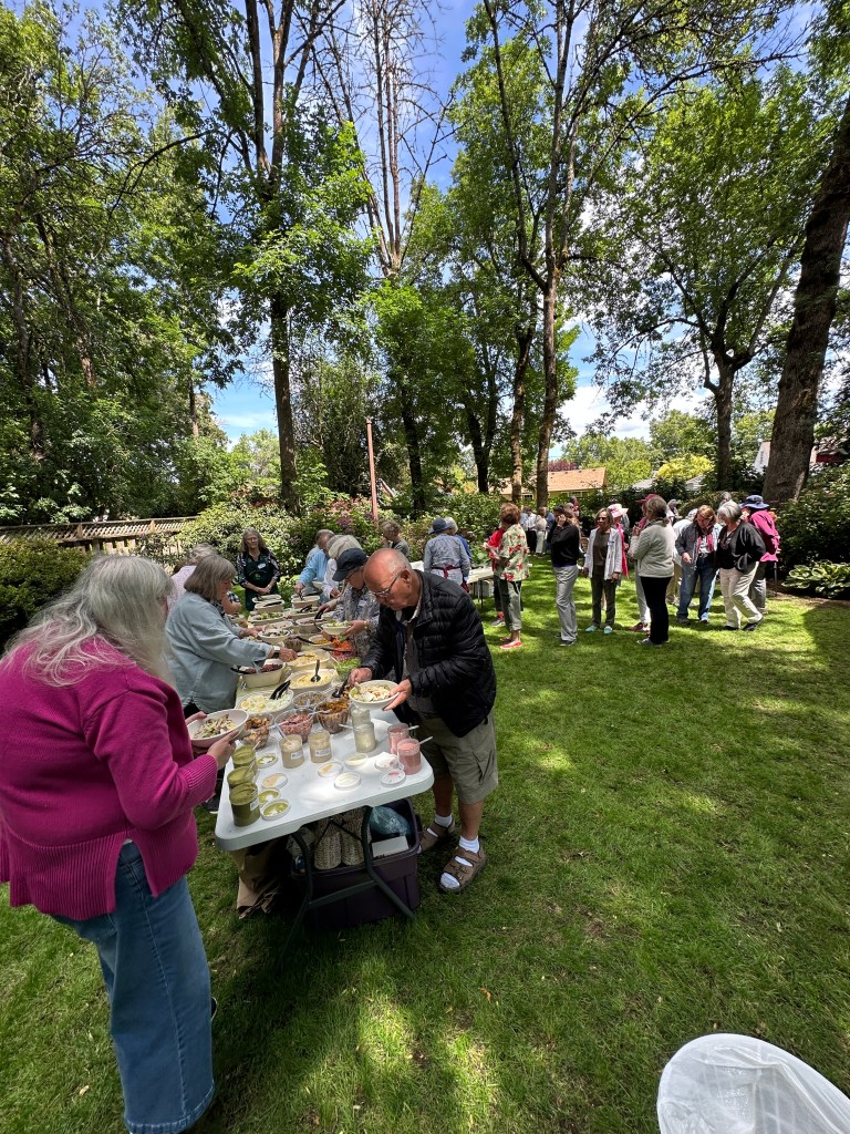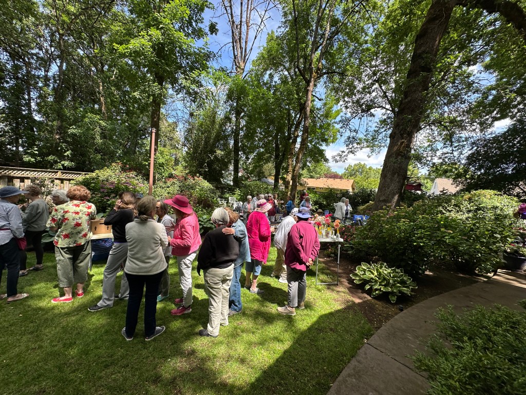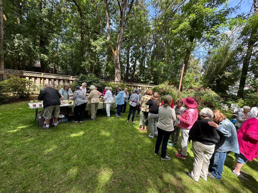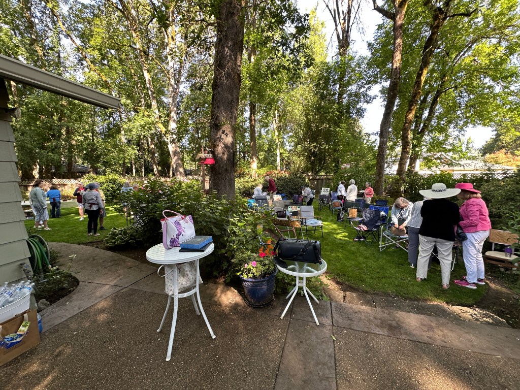 We had our end-of-year meeting and luncheon at the home of Sue Pike, whose backyard is absolutely perfect for this event! Plenty of room, gorgeous shade and beautiful plantings. Thank you, Sue!